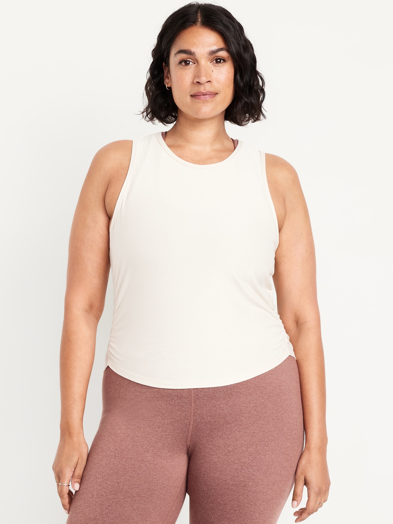 CloudMotion Ruched Tank Top: The new Cloud94 Soft. Versatile, sweat-wicking and soft as a literal cloud.crew neck, sleeveless, ruched sides, curved hem, go-dry wicks moisture, #663785