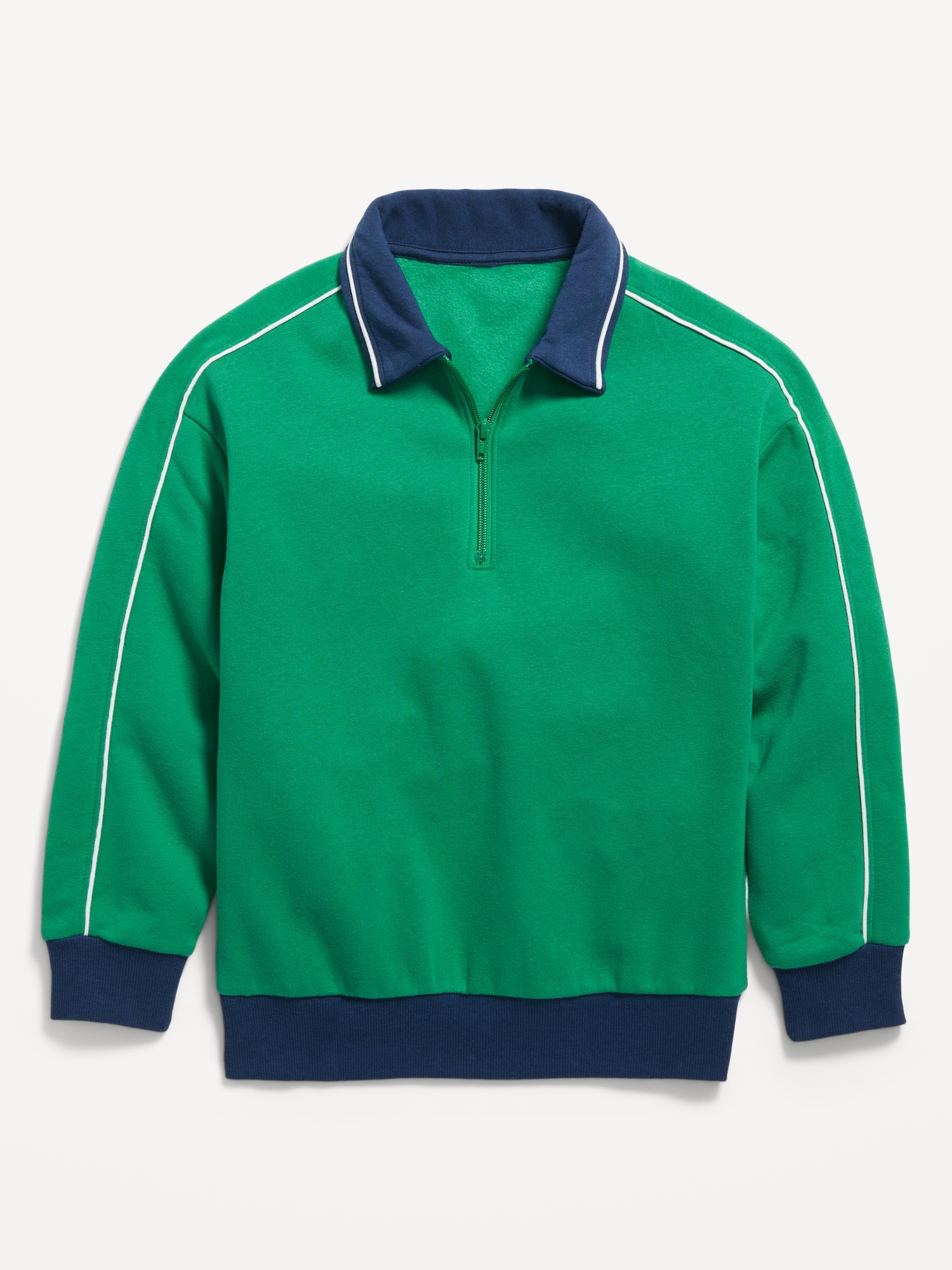 Collared Quarter-Zip Fleece Sweatshirt for Boys: pointed collar, quarter zip, long sleeves, drop shoulders, banded hem, #761753