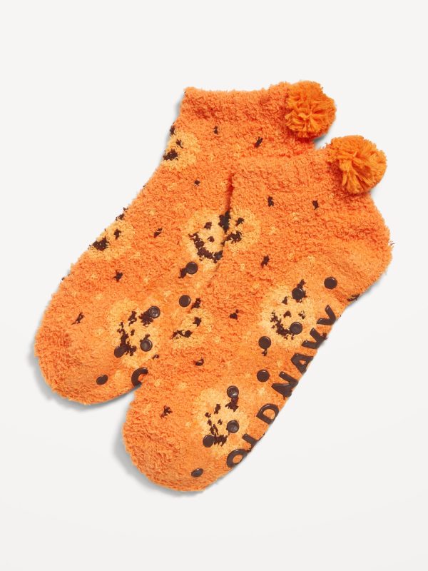 Cozy Ankle Socks for Women: pom at heel, notched toe seams, seasonal prints and graphics vary, #803655