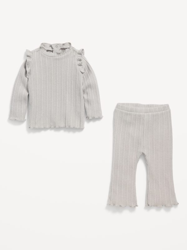 Cozy Long-Sleeve Ribbed Ruffle-Trim Top and Pants Set for Baby