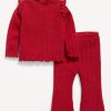 Cozy Long-Sleeve Ribbed Ruffle-Trim Top and Pants Set for Baby
