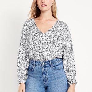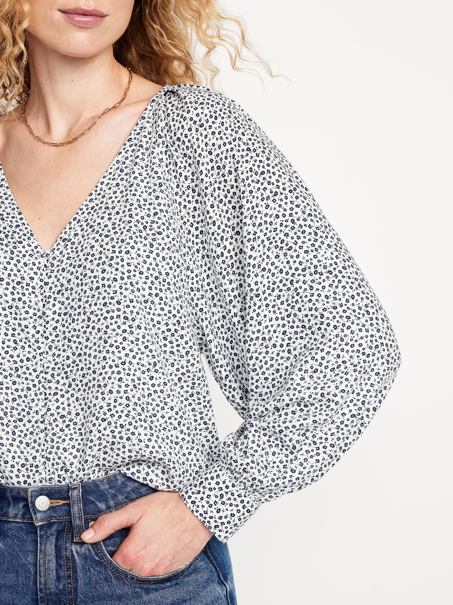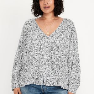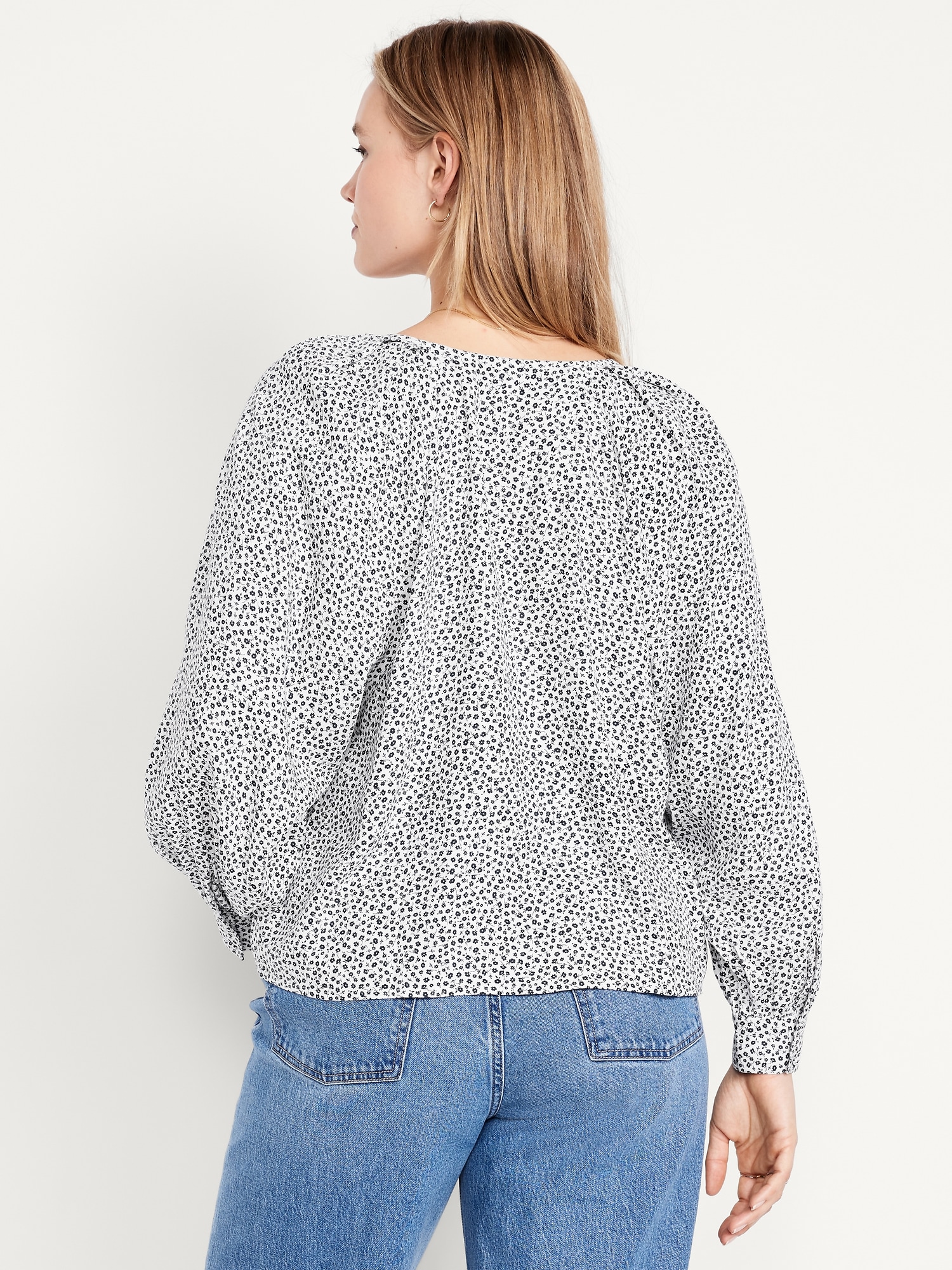 Crepe Button-Down Top: v-neck, raglan sleeves with buttoned cuffs, full-button front, prints vary, #805742
