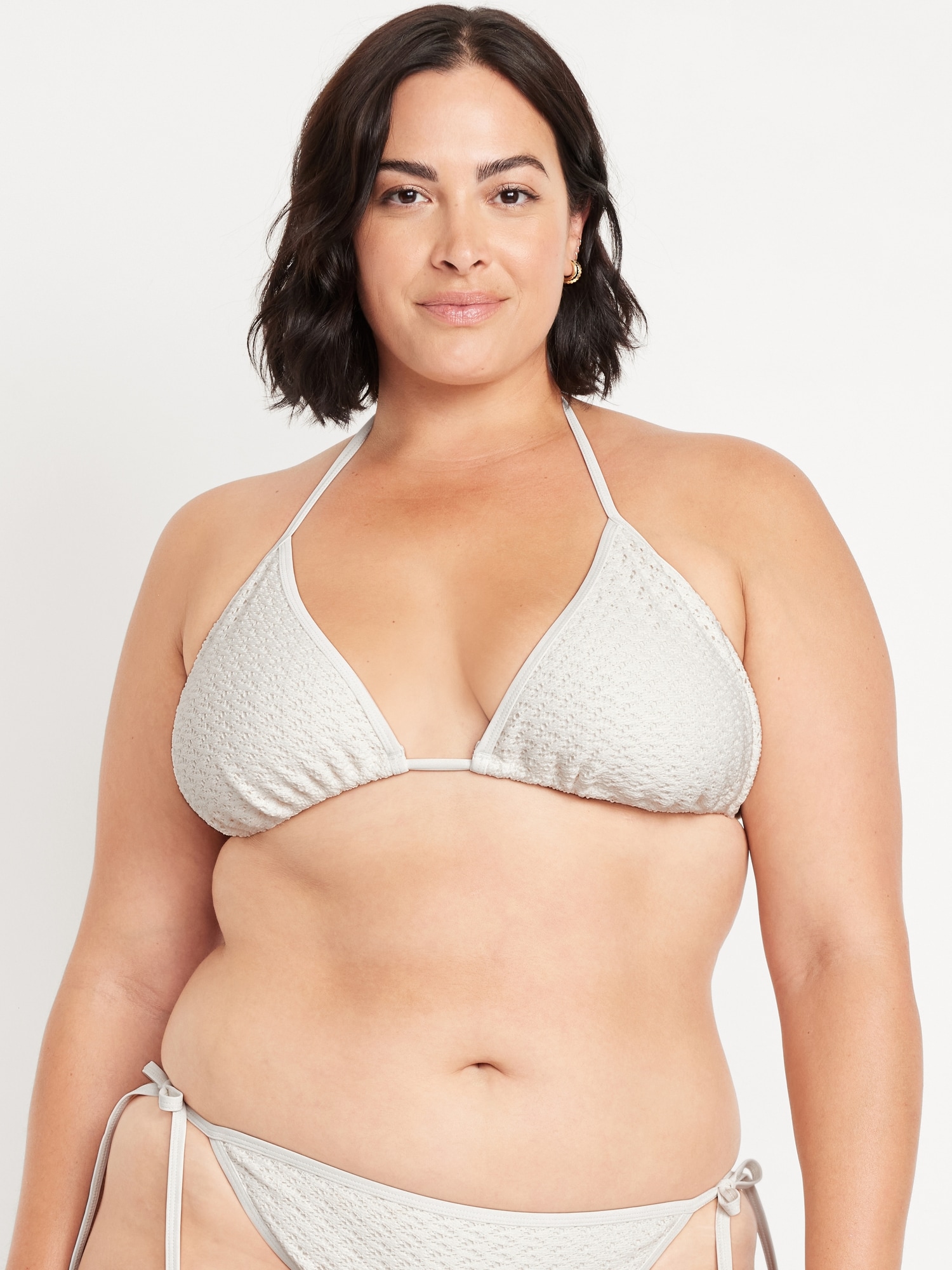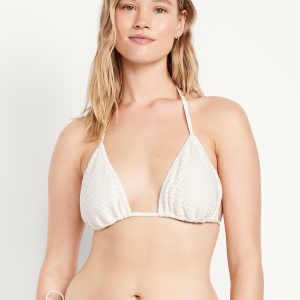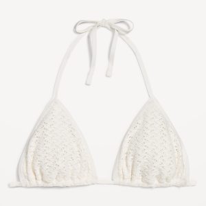 Crochet Triangle Bikini Swim Top: tie-neck halter straps, removable pads, tie-back strap, #747897