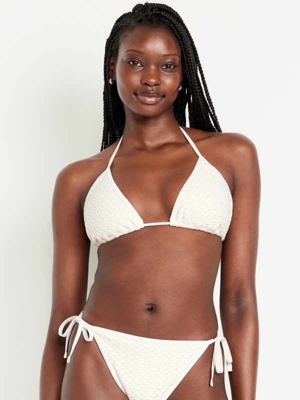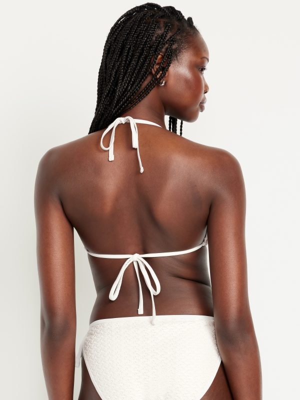 Crochet Triangle Bikini Swim Top: tie-neck halter straps, removable pads, tie-back strap, #747897