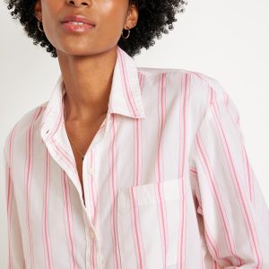 Cropped Button-Down Striped Shirt