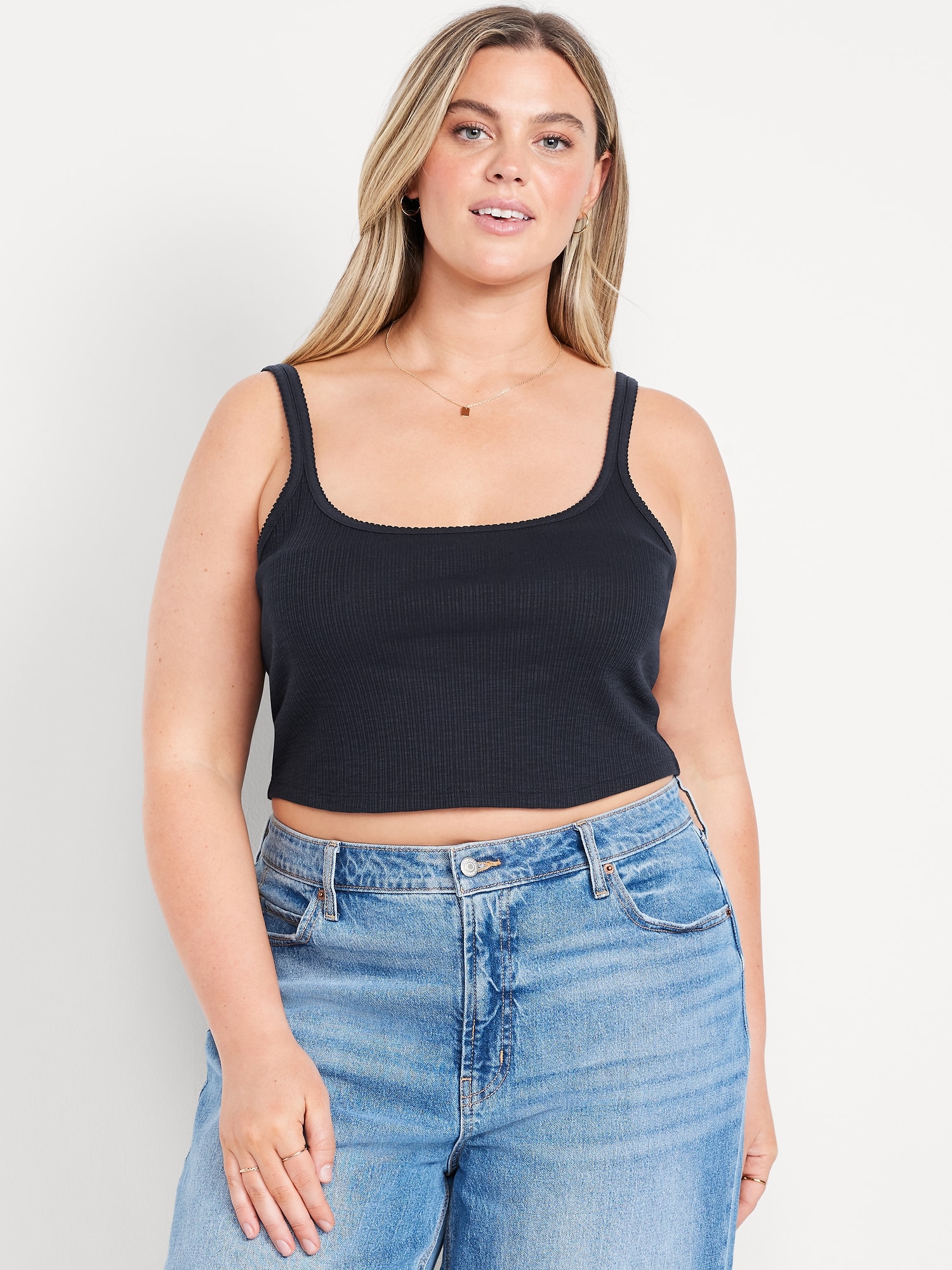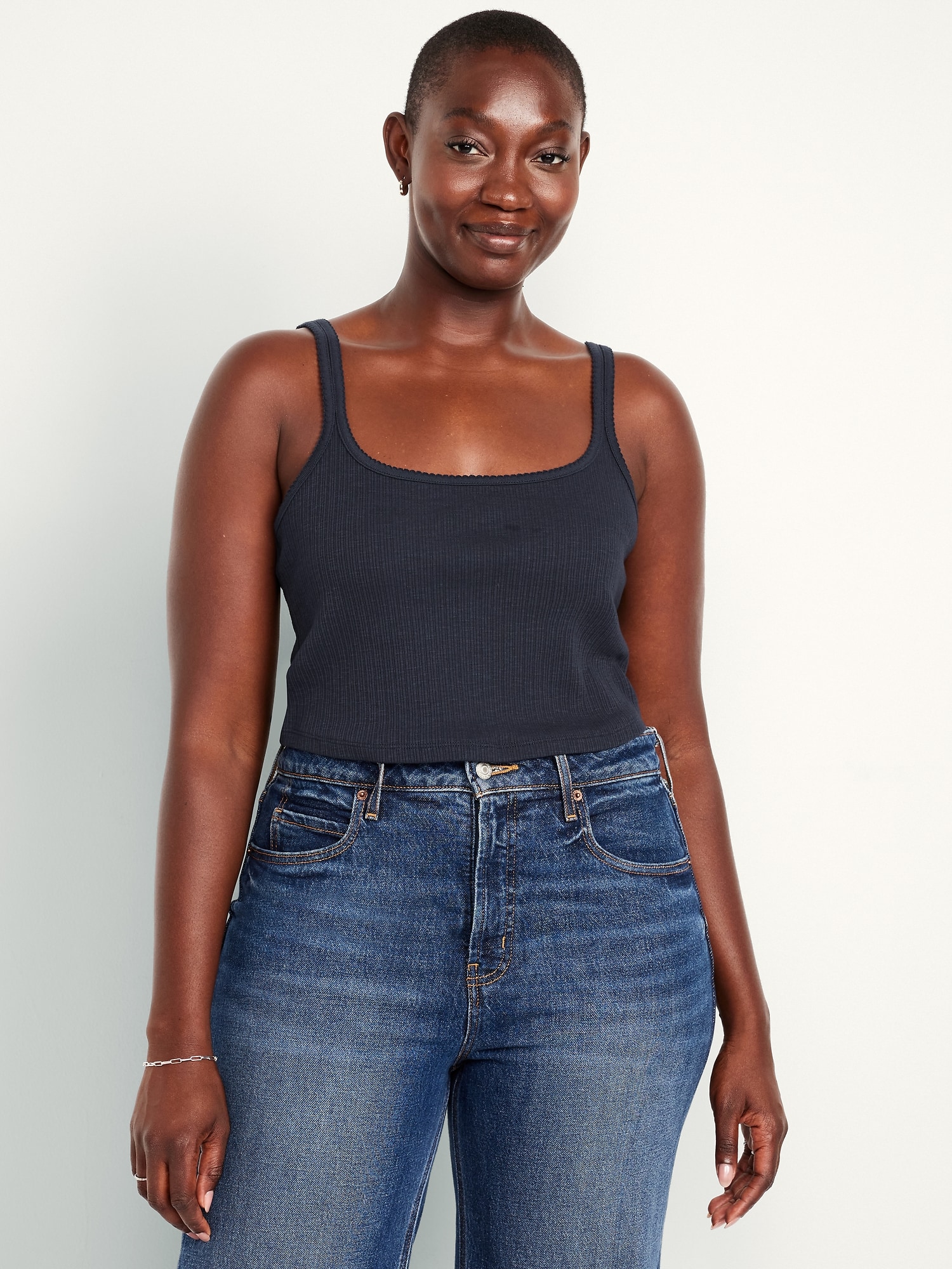 Cropped Pointelle Cami Top: scoop neck, spaghetti straps, #844566