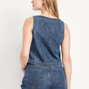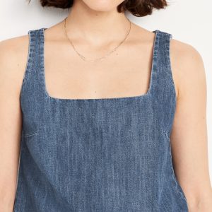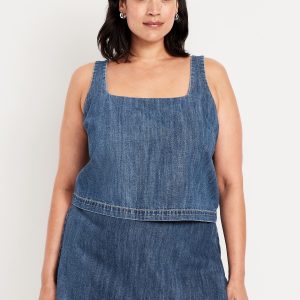 Cropped Square-Neck Denim Top: square neck, sleeveless, darted bust, #756733