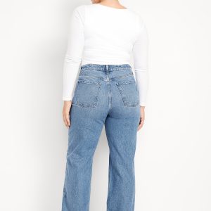 Curvy Extra High-Waisted Cuffed Wide-Leg Jeans: A roomy wide leg with a smaller waist, fuller hips.no-gap extra high waist, zip fly, front scoop pockets, back patch pockets, ripped detail, #855940