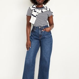 Curvy Extra High-Waisted Wide-Leg Jeans: A roomy wide leg with a smaller waist, fuller hips.no-gap extra high waist, zip fly, front scoop pockets, back patch pockets, ripped detail, #855940