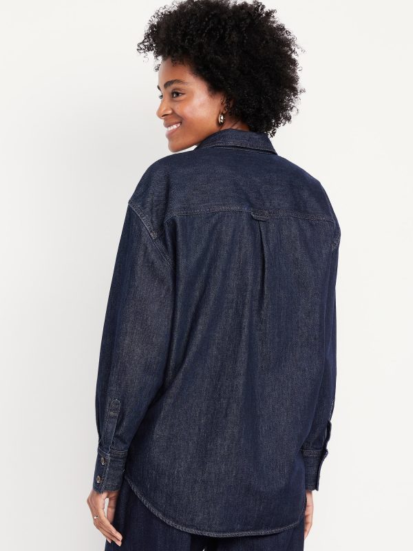 Denim Button-Down Boyfriend Shirt: spread collar, long sleeves with buttoned cuffs, patch chest pocket, full-button front, #800071