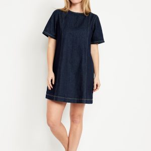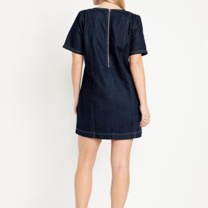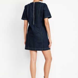 Denim Mini Dress: crew neck, short sleeves, center back zipper, seamed front and back, #798224