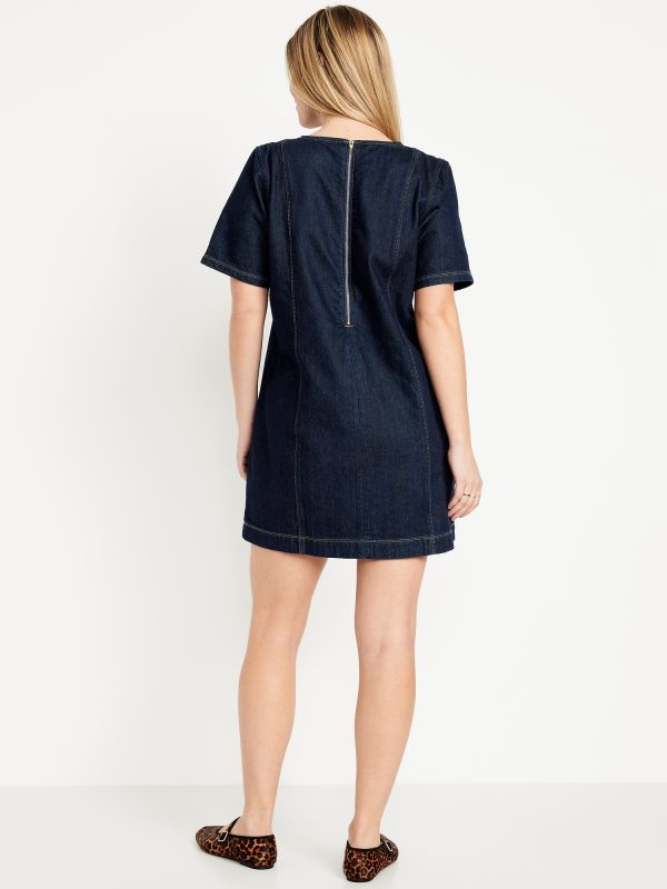 Denim Mini Dress: crew neck, short sleeves, center back zipper, seamed front and back, #798224