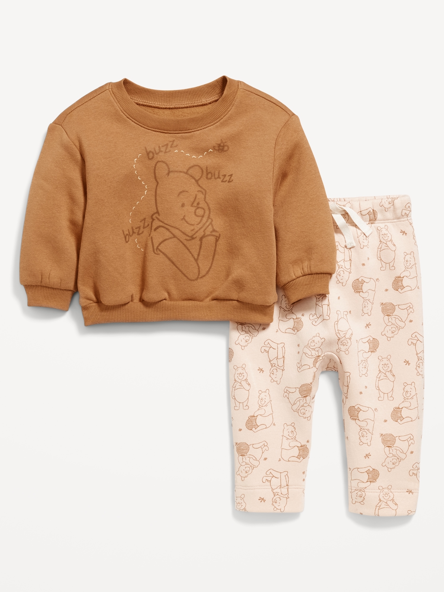 Disney© Crew-Neck Sweatshirt and Sweatpants Set for Baby: crew neck, long sleeves, drop shoulders, licensed graphic, banded hem, matching bottoms, elasticized waistband, functional drawstring, all-over licensed graphic or stripes, ©Disney., #761884