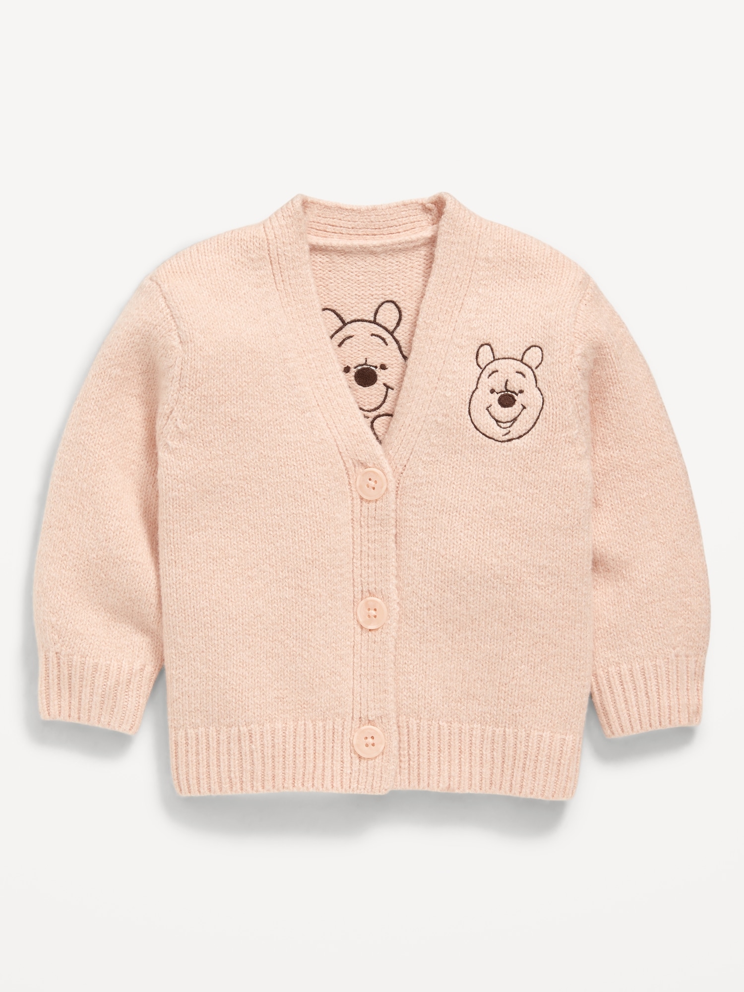 Disney© Embroidered Graphic Cardigan Sweater for Baby: v neck, long sleeves, small-scale embroidered licensed graphic at chest, large-scale embroidered licensed graphic at back, three-button placket, ribbed cuffs and hem, ©Disney., #761885