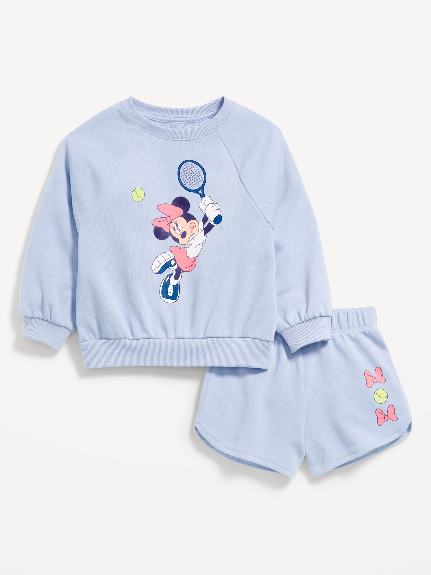 Disney© French-Terry Graphic Sweatshirt and Shorts Set for Toddler Girls: crew neck, long raglan sleeves, banded hem, matching shorts, elasticized waistband, dolphin hem, licensed graphic, ©Disney., online exclusive, #762221