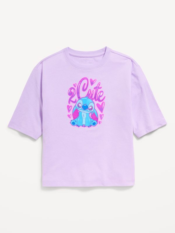 Disney© Stitch Graphic T-Shirt for Girls: crew neck, short elbow-length sleeves, drop shoulders, licensed graphic, #810477