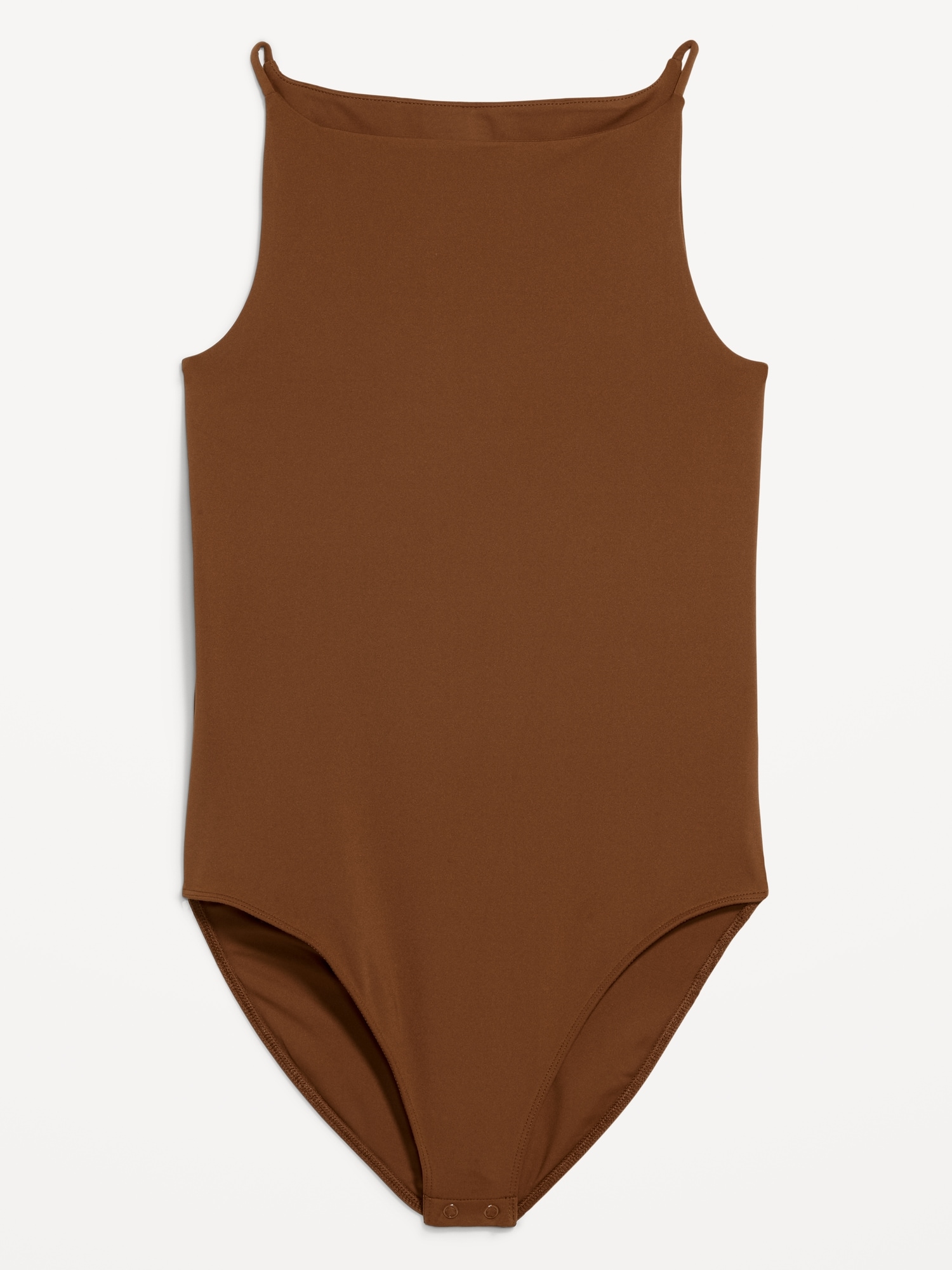 Double-Layer Cami Bodysuit: high cami neck, sleeveless, snaps at inseam, #686657