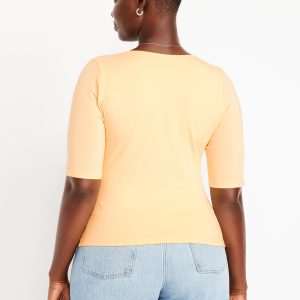 Double-Layer Elbow-Sleeve Scoop-Neck T-Shirt