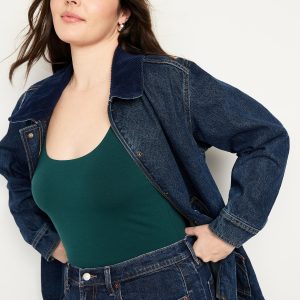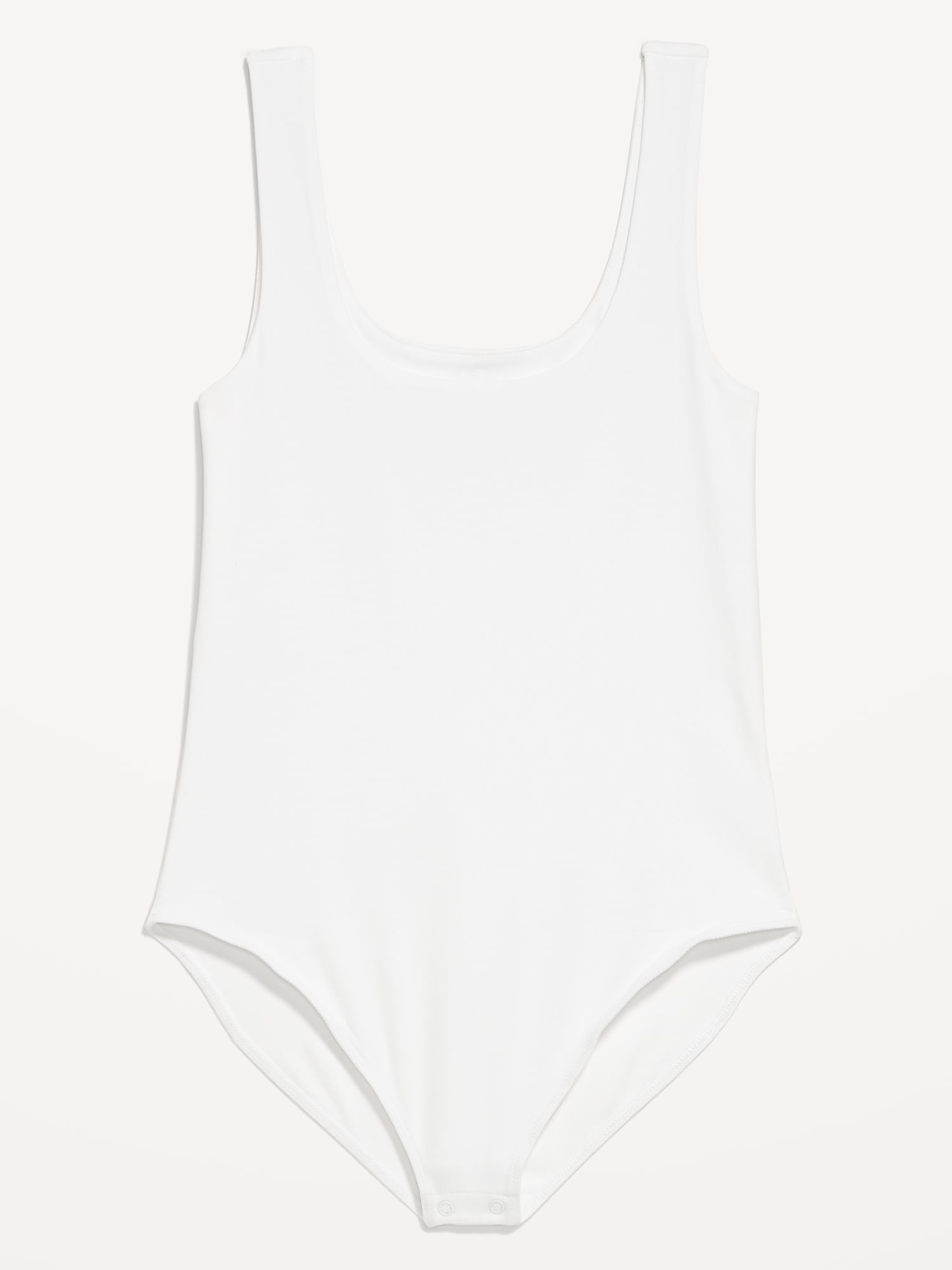 Double-Layer Scoop-Neck Bodysuit: scoop neck, wide straps, snaps at inseam, #683485