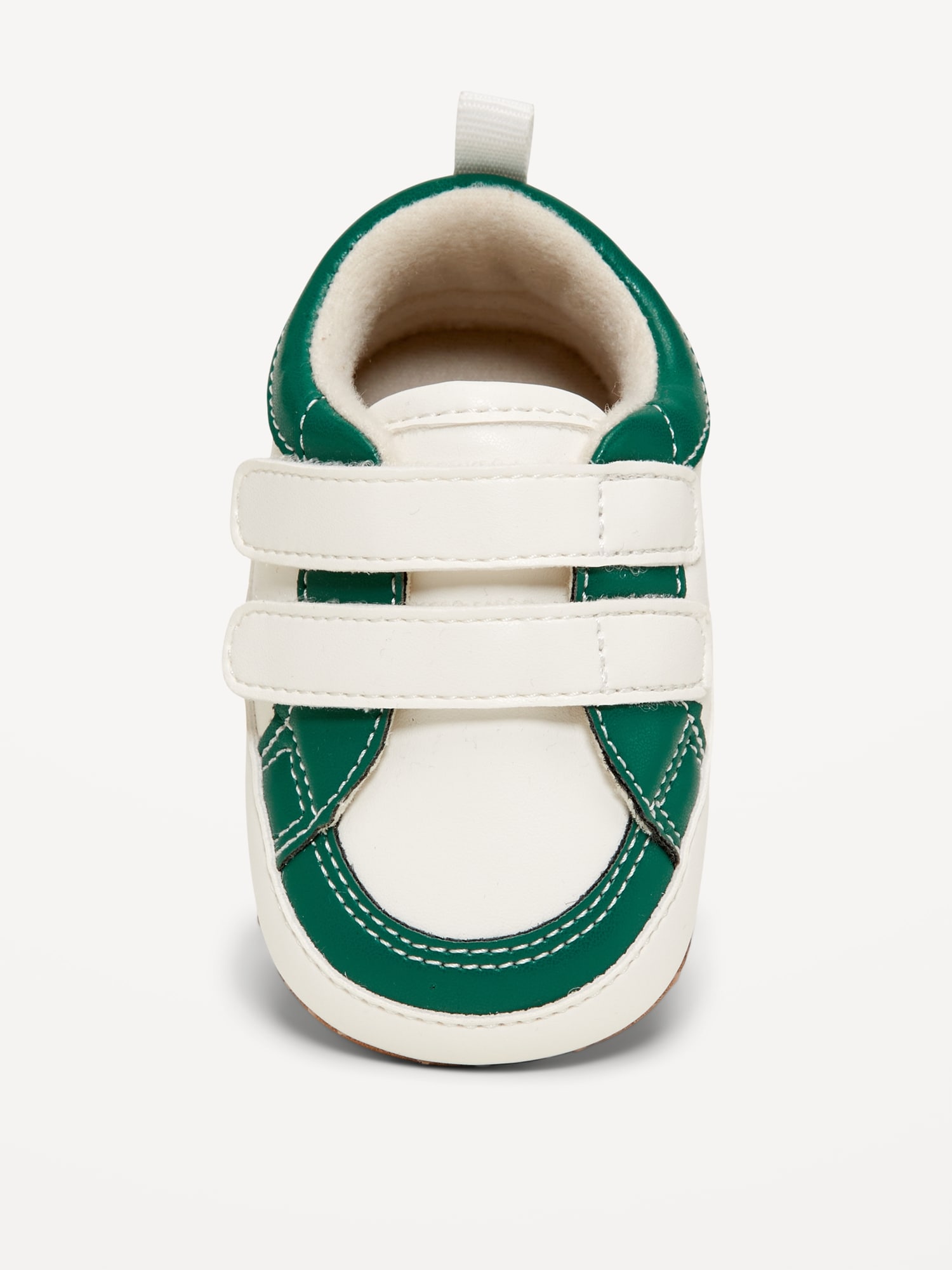 Double Secure-Strap Faux-Leather Sneakers for Baby: adhesive secure close straps, cushioned foot bed, gripper dots at outsole, pull tab at heel, #800499