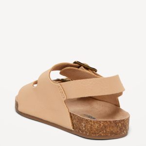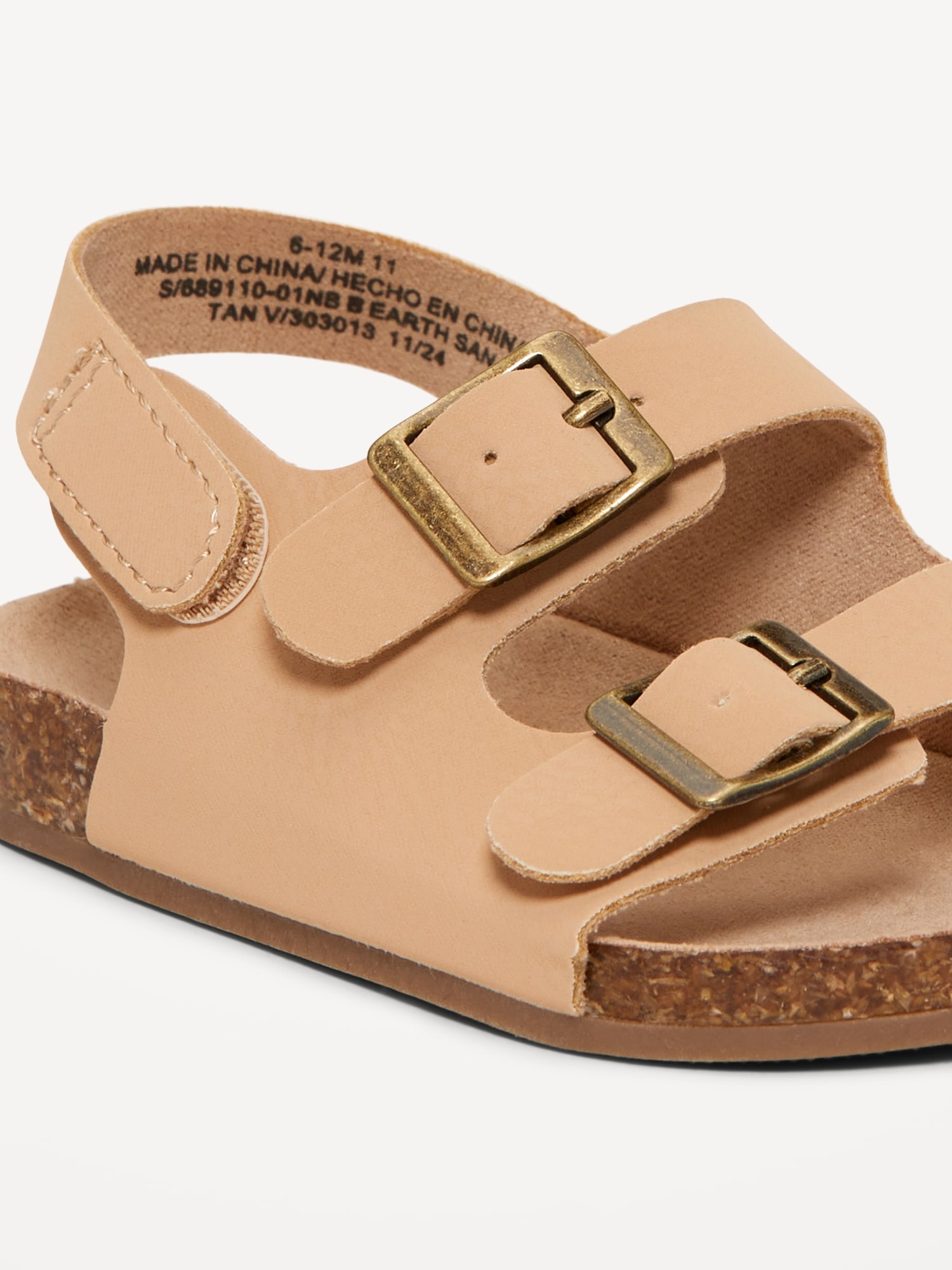 Double-Strap Sandals for Baby: ankle strap, decorative bow across foot, faux-cork midsole, cushioned foot bed, #762298