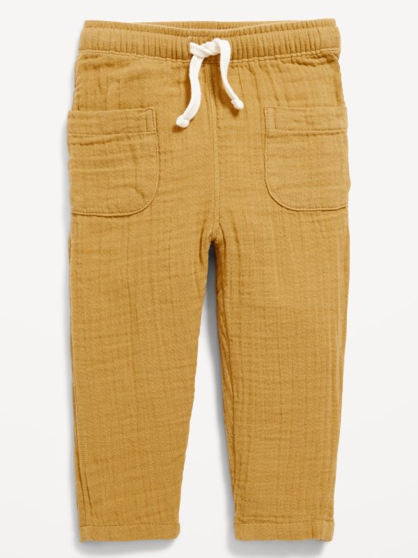 Double-Weave Pants for Baby: elasticized waistband, functional drawstring, side patch pockets, online exclusive, #761915