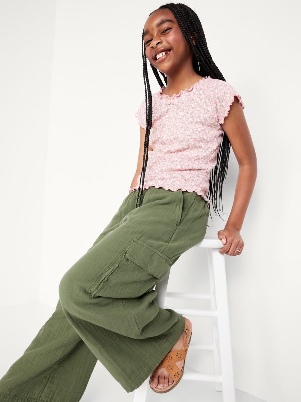 Double-Weave Wide-Leg Cargo Pants for Girls