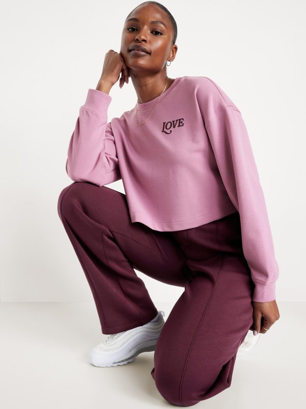Dynamic Fleece Oversized Crop Sweatshirt: Featuring Dynamic Fleece. Soft, smooth fleece plus made-to-move stretch.rib-knit crew neck, long dolman sleeves, graphic varies, pullover style, #692129