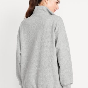Dynamic Fleece Oversized Textured Tunic Sweatshirt: Featuring Dynamic Fleece. Soft, smooth fleece plus made-to-move stretch.spread collar, drop-shoulder sleeves, half-zip front, vertical welt pockets, rib-knit trim, breathable, #784473
