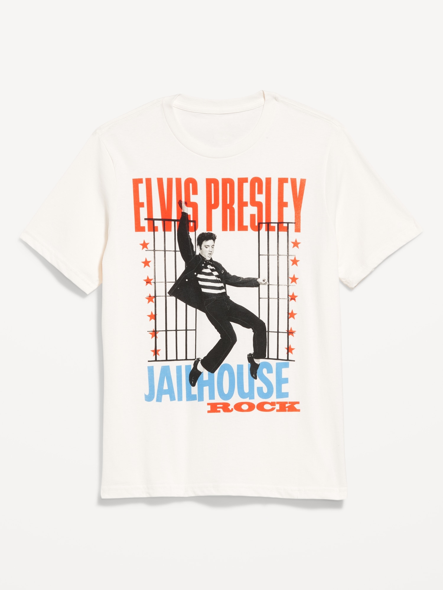Elvis Presley™ T-Shirt: rib-knit crew neck, short sleeves, licensed logo graphic, © Copyright 2023 Universal Music Enterprises. All rights reserved., #847670