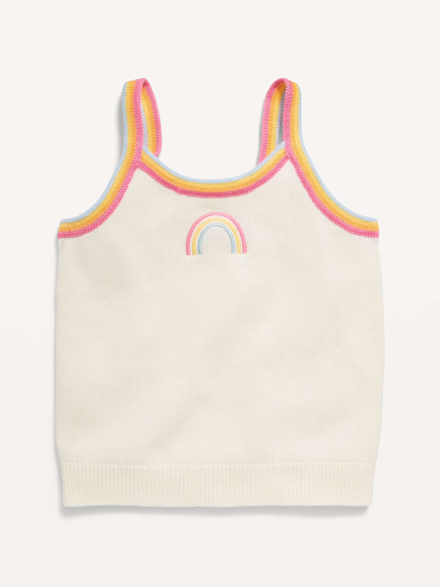 Embroidered Sweater Tank Top for Girls: rounded neckline, skinny shoulder straps, banded hem, embroidered graphic, #708317