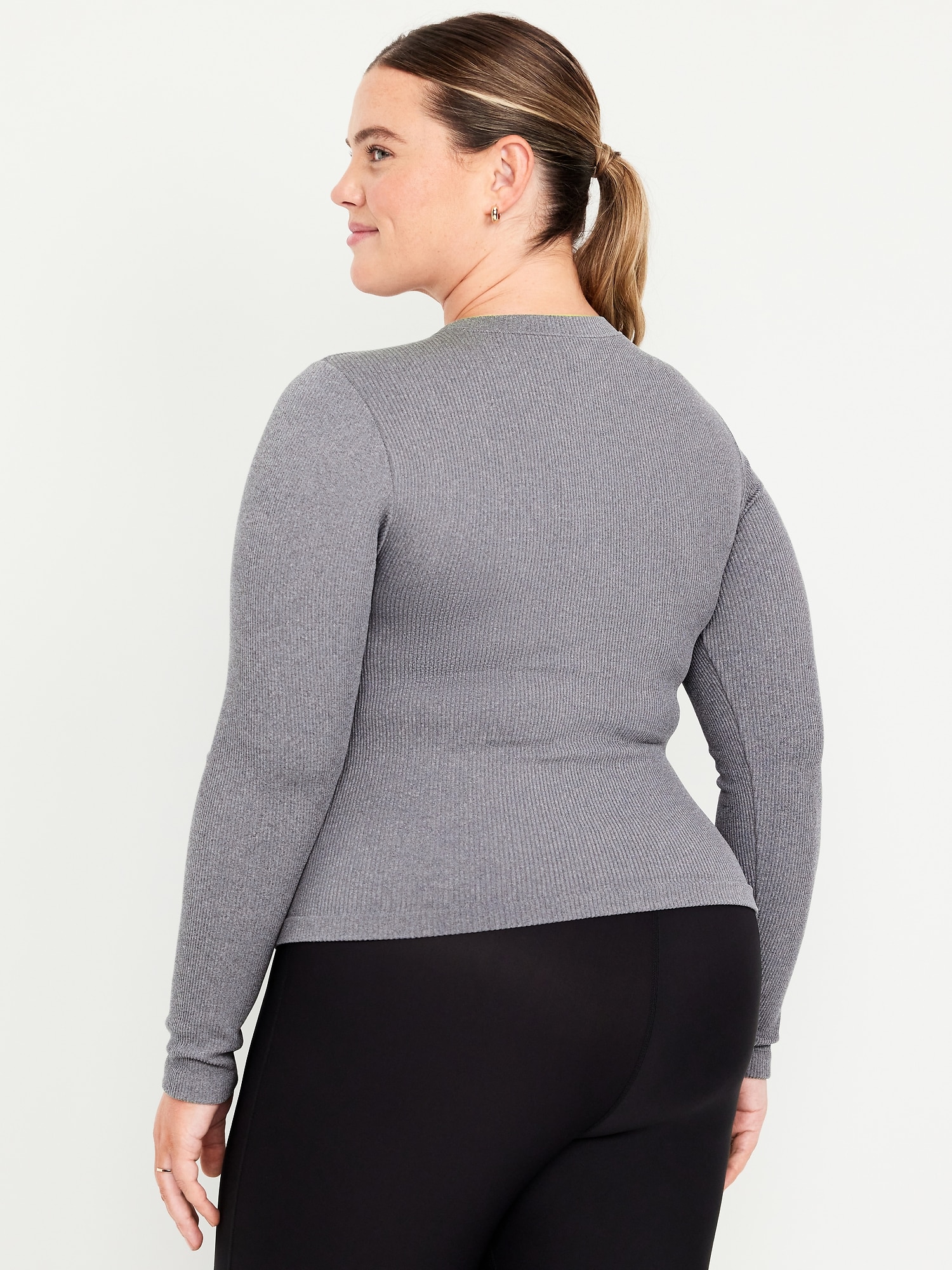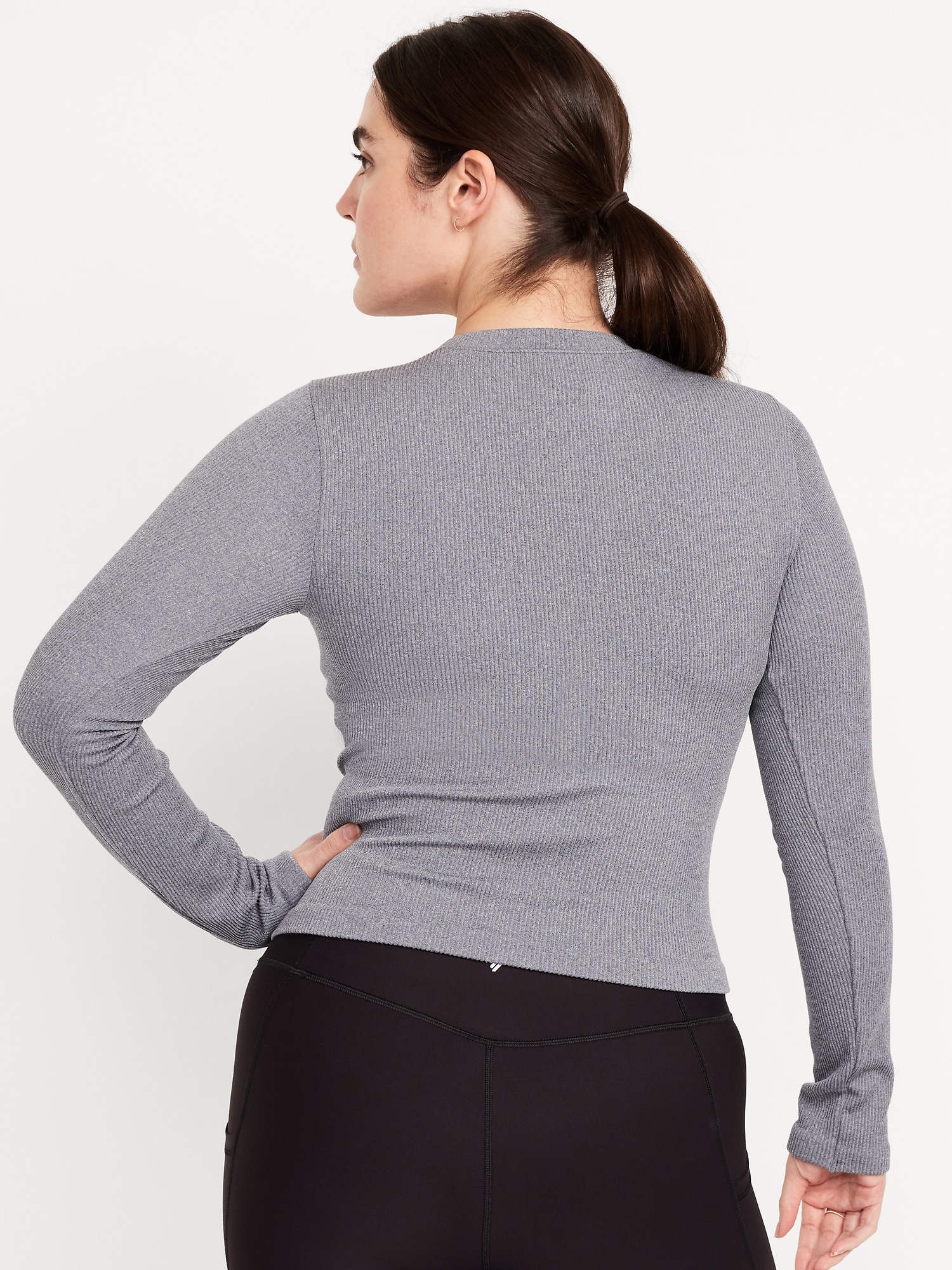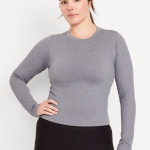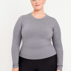 Exhale Seamless Fitted Rib T-Shirt: Ribbed nylon with incredible stretch and softness.crew neck, long sleeves, go-dry wicks moisture, #569705