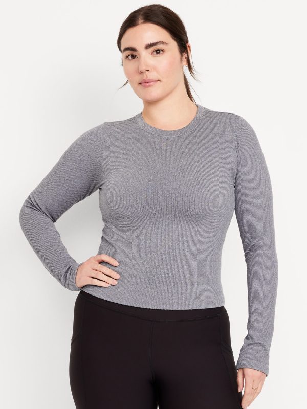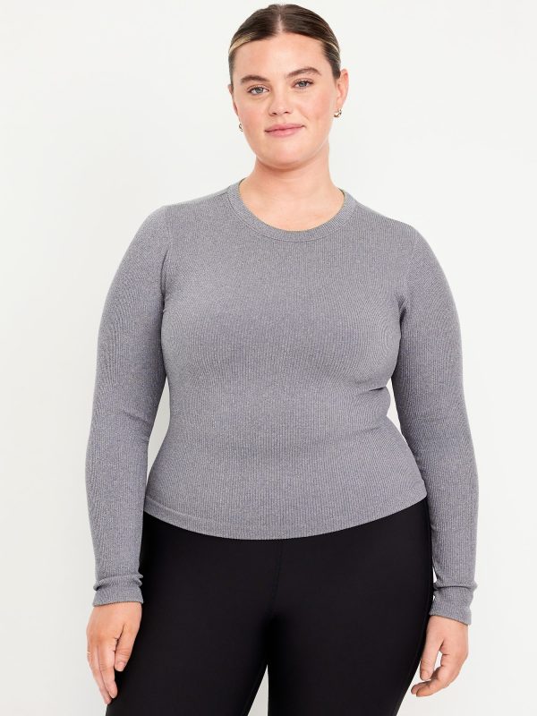 Exhale Seamless Fitted Rib T-Shirt: Ribbed nylon with incredible stretch and softness.crew neck, long sleeves, go-dry wicks moisture, #569705