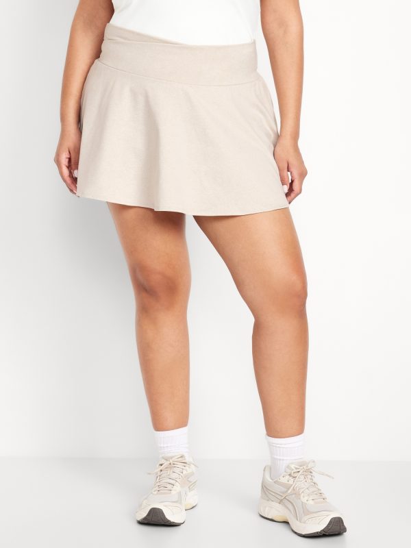 Extra High-Waisted CloudComfy Skort: Lightly textured and soft as a literal cloud.cross-front waistband, built-in bike shorts, go-dry wicks moisture, breathable, #569963
