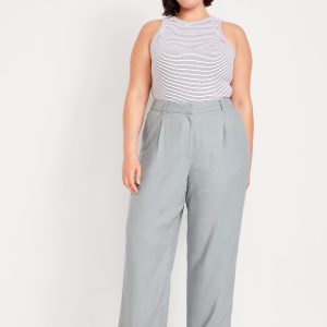 Extra High-Waisted Linen-Blend Taylor Wide-Leg Trouser Pants: Tailored pleats. Loose fit. Don’t do 9-5 (or 5-9) without them.partially-elasticized waistband, hook-and-bar closure, hip pockets, functional back welt pocket, striped print, wide leg, #683376