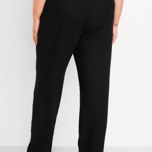 Extra High-Waisted Linen-Blend Taylor Wide-Leg Trouser Pants: Tailored pleats. Loose fit. Don’t do 9-5 (or 5-9) without them.partially-elasticized waistband, hook-and-bar closure, hip pockets, functional back welt pocket, striped print, wide leg, #683376