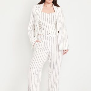 Extra High-Waisted Linen-Blend Taylor Wide-Leg Trouser Pants: Tailored pleats. Loose fit. Don’t do 9-5 (or 5-9) without them.partially-elasticized waistband, hook-and-bar closure, hip pockets, functional back welt pocket, striped print, wide leg, #683376