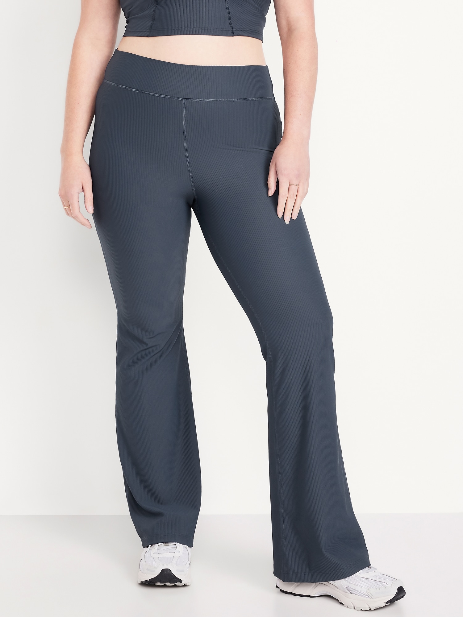 Extra High-Waisted PowerSoft Rib Flare Leggings: Featuring PowerSoft. Light compression meets a peachy-smooth, sweat-wicking fabric.elasticized waistband, go-dry wicks moisture, #544373