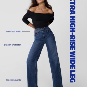 Extra High-Waisted Wide-Leg Jeans: A roomy wide leg with a long silhouette.zip fly, front scoop pockets, back patch pockets, #846999