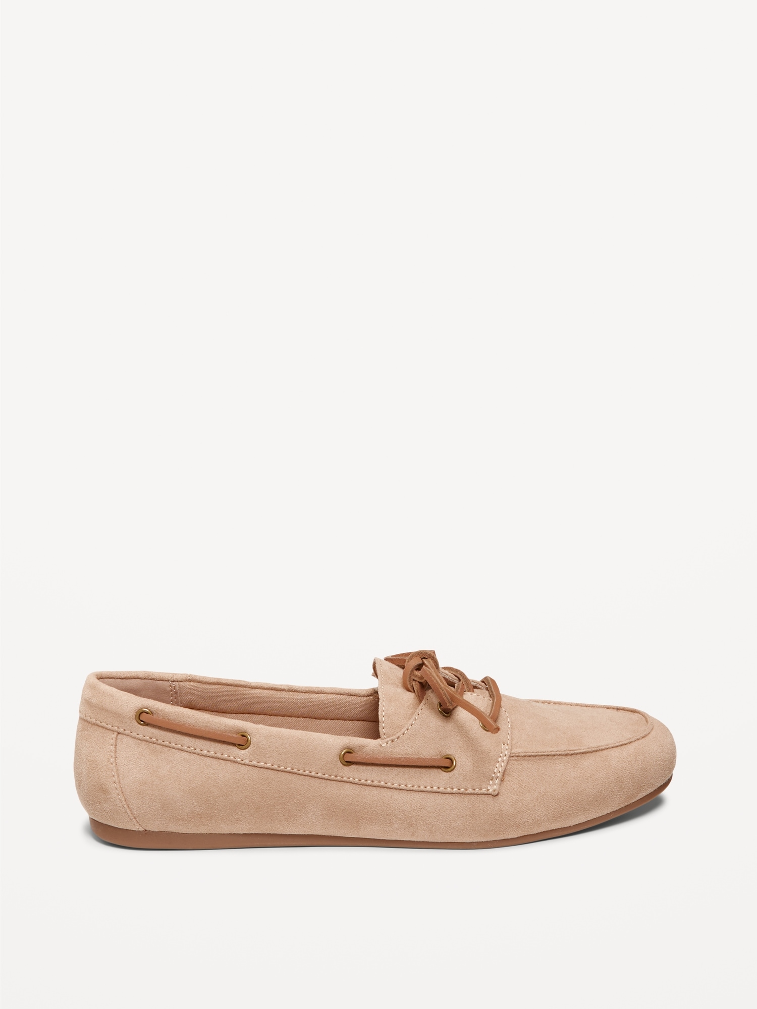 Faux-Leather Boat Shoes for Women: faux leather upper, lace-up detail, cushioned foot bed, slip-on style, #750797