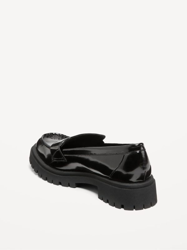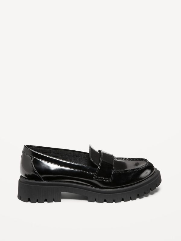 Faux-Leather Chunky Heel Loafers: textured faux-leather upper, loafer strap at vamp, cushioned foot bed, rugged lug sole, chunky heel, #544280