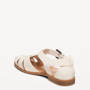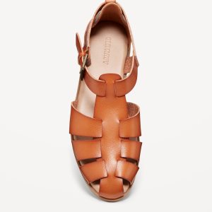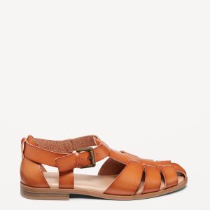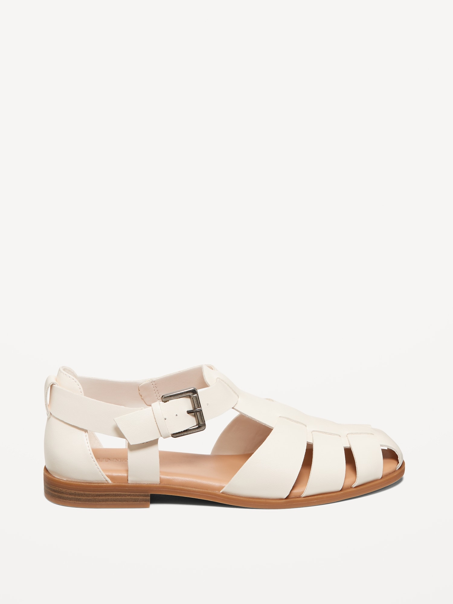 Faux-Leather Fisherman Sandals: faux-leather upper, buckle closure at ankle, cushioned foot bed, #663903