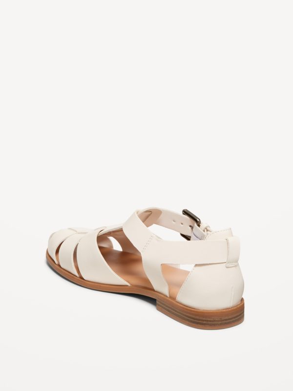Faux-Leather Fisherman Sandals: faux-leather upper, buckle closure at ankle, cushioned foot bed, #663903