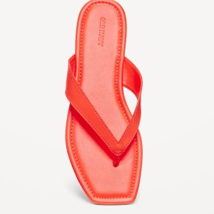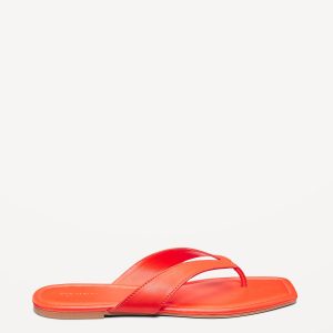 Faux-Leather Flip Flop for Women: faux leather upper, square toe, firm foot bed, slide-on style, #766739