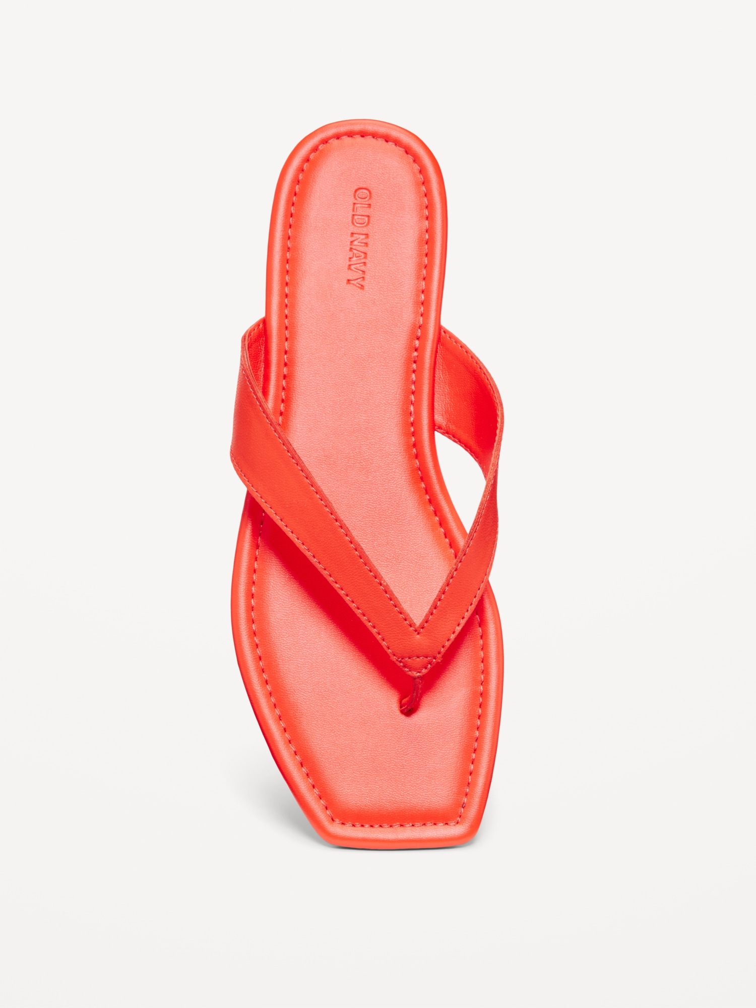 Faux-Leather Flip Flop for Women: faux leather upper, square toe, firm foot bed, slide-on style, #766739