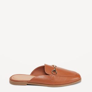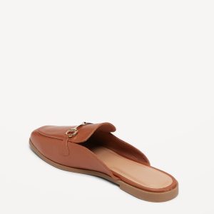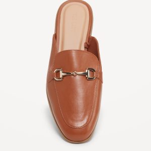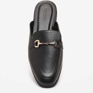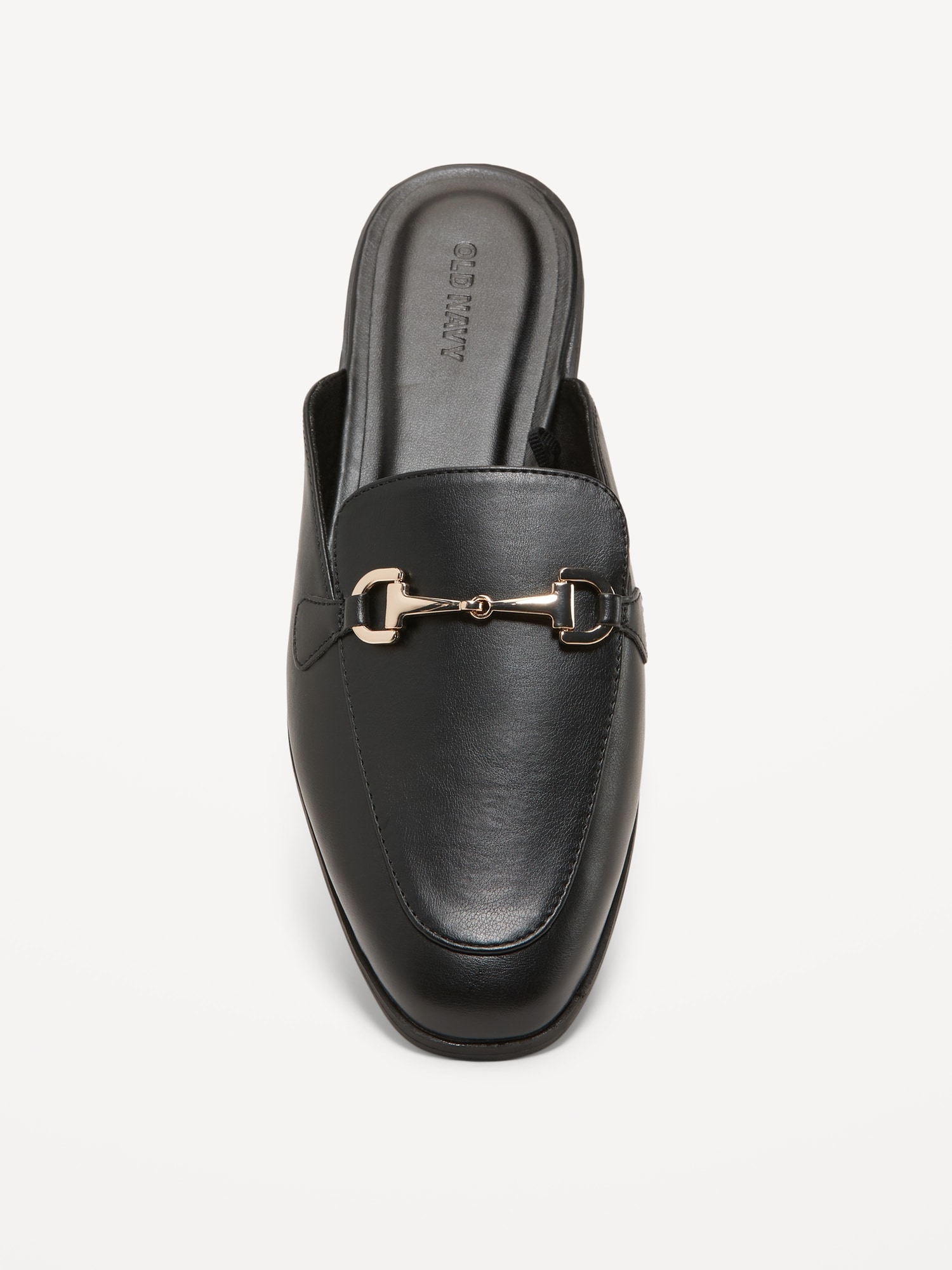 Faux-Leather Loafer Mule Shoes: Faux-leather upper, with buckle front detail, open mule heel, and pointed, square toe., Cushioned faux-leather foot bed., Textured thermoplastic rubber outsole., These shoes are made with a 51% recycled thermoplastic rubber outsole. Less waste in the world ??, #745325