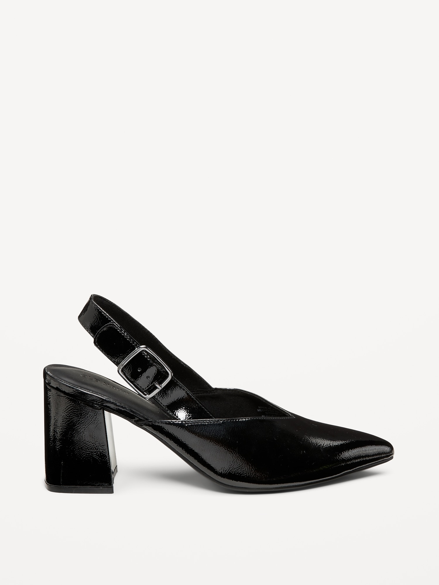 Faux-Leather Slingback Heels for Women: pointed toe, wide buckled ankle strap, block heel, #788065