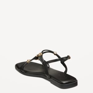 Faux-Leather Strappy Hardware Sandals: faux-leather upper, black: knotted gold-tone detail, bone: knotted silver-tone detail, buckle fastening at ankle, cushioned foot bed, #751054