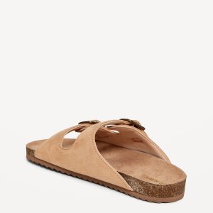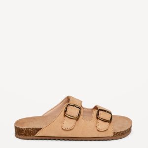 Faux-Suede Buckled Strap Sandals for Girls: double buckle straps, cushioned foot bed, faux-cork midsole, textured woven crochet-like pattern along straps, #693401