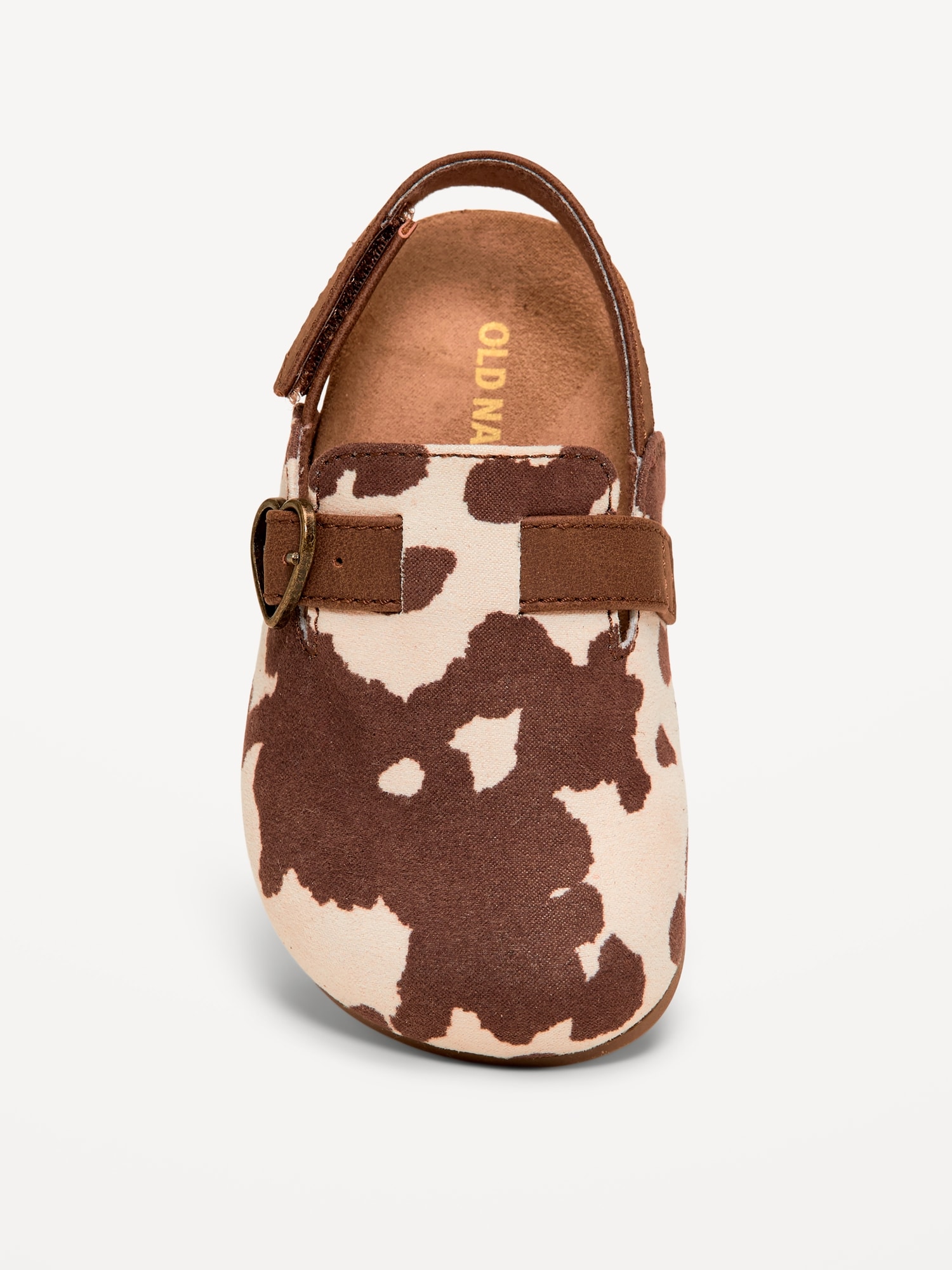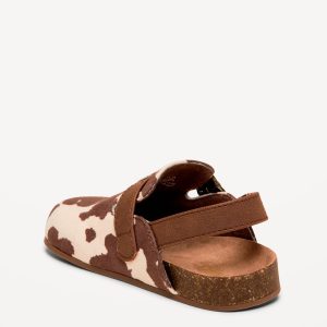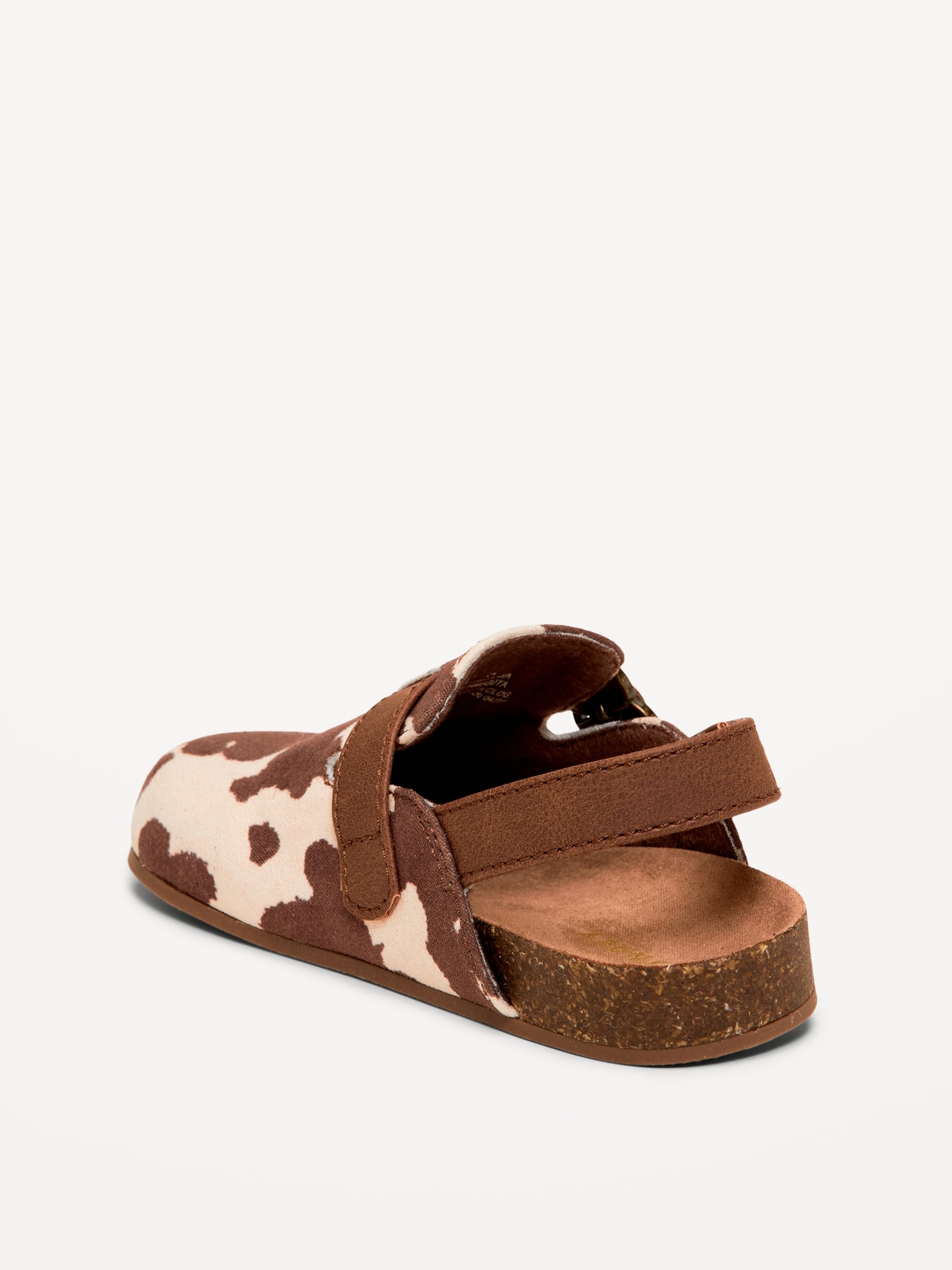 Faux-Suede Clogs for Toddler Girls: buckled strap across foot, adhesive secure close ankle strap, cork midsole and textured outsole, faux-fur trim, #800511